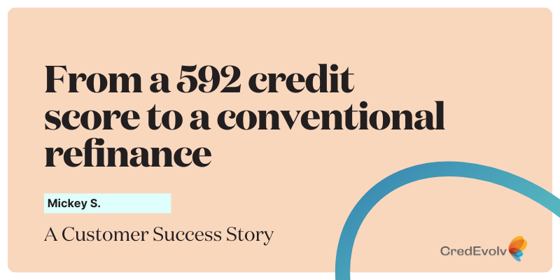 For many borrowers, the path to homeownership feels overwhelmingly uncertain when credit challenges stand in the way. Mickey S was connected to CredEvolv by his mortgage loan originator at CrossCountry Mortgage (CCM) when his 592 credit score prevented him from qualifying for a conventional mortgage.
