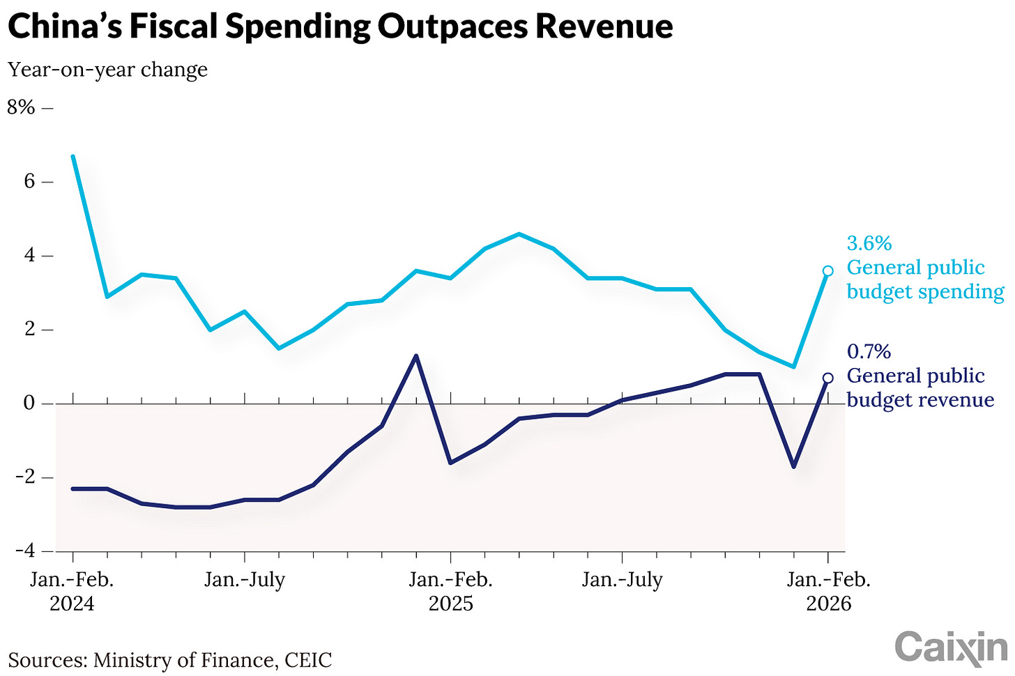 Fiscal outlays under the general public budget (GPB) — the largest of the four budgets in China’s fiscal system — rose 3.6% year-on-year to 4.67 trillion yuan ($678 billion) in January-February, according to finance ministry data.