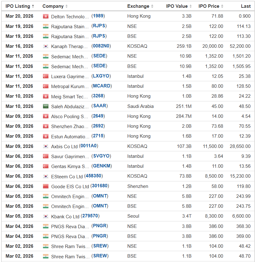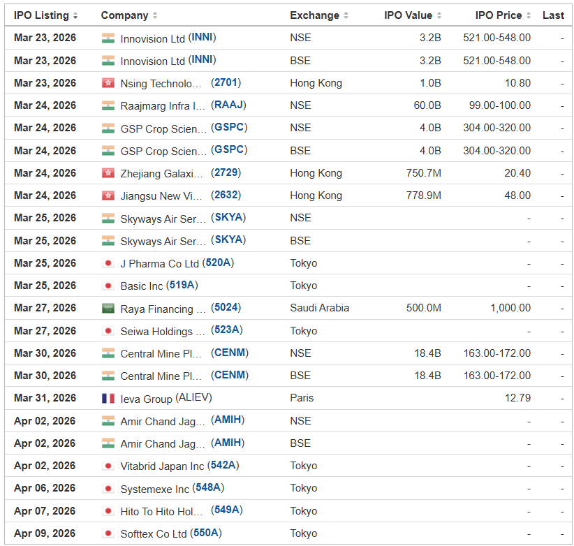 Frontier and emerging market highlights from IPOScoop.com and Investing.com (NOTE: For the latter, you need to go to Filter and “Select All” countries to see IPOs on non-USA exchanges):