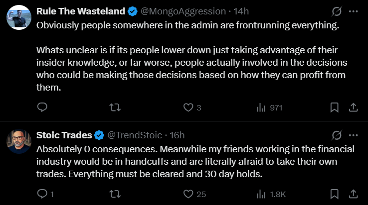 This normally on Monday post took a bit longer given the length of material to include (e.g. earnings presentations posted on Seeking Alpha, etc.) plus Ramadan/Hari Raya holidays have come to an end. As I noted last week, I assumed the war in the Middle East would escalate when the holidays ended and so has the blatant in your face grifting/insider trading: