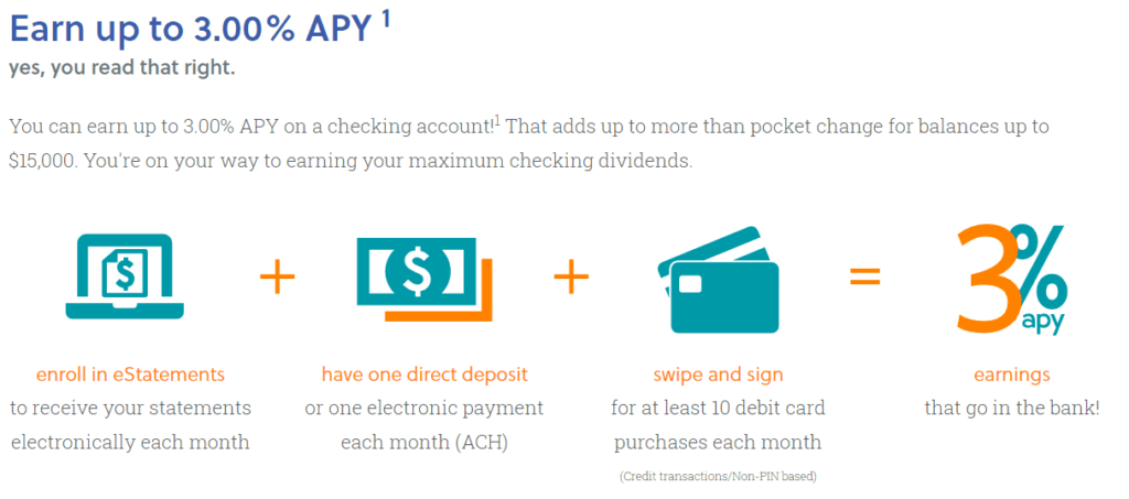 United Federal Credit Union Ultra Checking account offers 3% APY on balances up to $15,000 when the following requirements are met: