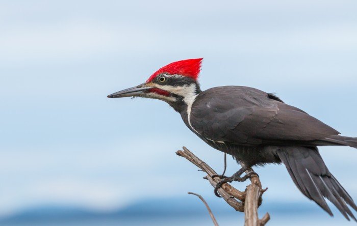 Red is the color of the holiday season, and few creatures wear it as boldly as the pileated woodpecker. With its flaming red crest atop a bold pattern of black and white plumage, it is easy to see our most prolific wild homebuilders as they glide through the forest.