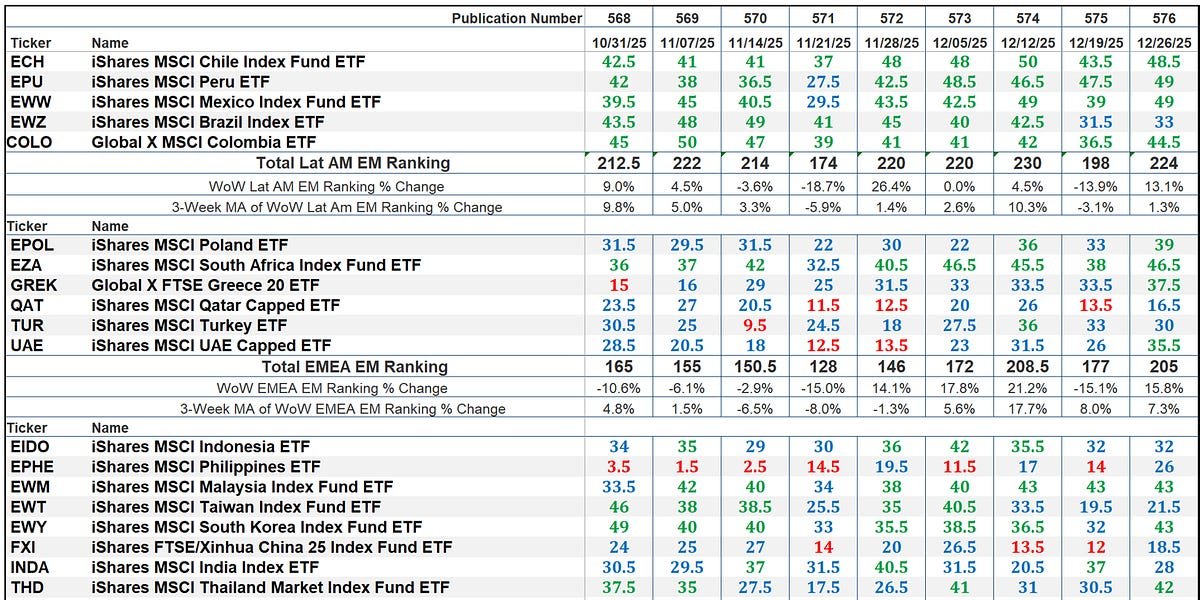 Welcome to The Market’s Compass Emerging Market’s Country ETF Study, Week #576. As always, it highlights the technical changes of the 20 EM Country ETFs that I track on a weekly basis and publish every third week. Paid subscribers will receive this week’s unabridged Emerging Market’s Country ETF Study sent to their registered e-mail. Past publications c…